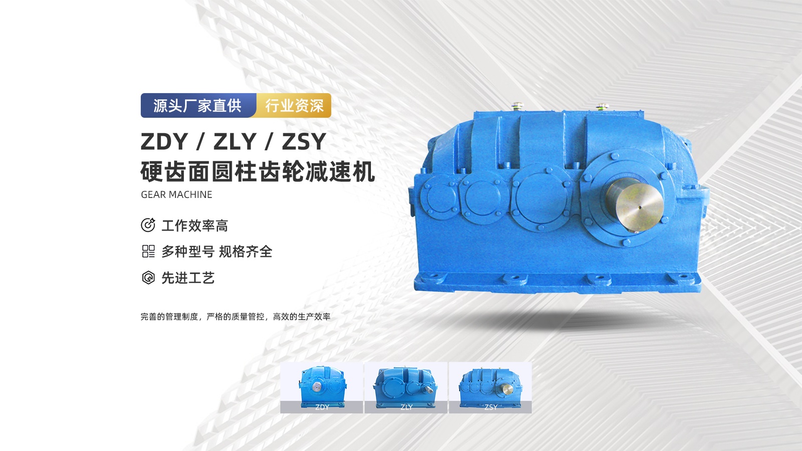 公司的主導產品有:ZDY ZLY ZSY ZFY硬齒面減速機、R/ K/ S/ F系列 減速機、H/B系列標準化工業齒輪箱、ZLYJ塑料機硬齒面減速機、軟齒面齒 輪減速機、行星齒輪減速機、電動滾筒及減速機齒輪配件,公司地處“齊魯 之邦”的國家級旅游城市 - 博山,交通便利四通八達,致力于國際、國內減 速機的銷售于服務。